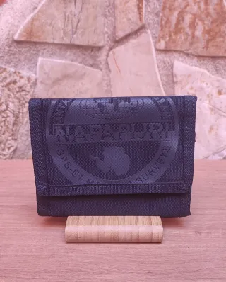 Portafoglio Napapijri Happy Wallet 4. Realizzato in robusto poliestere, con chiusura a strap, vano porta banconote e portadocumenti interno. Tasca portamonete chiusa da zip. Colore : Blu marine. Altezza 10 cm. Larghezza 13 cm. Profondità 1 cm.