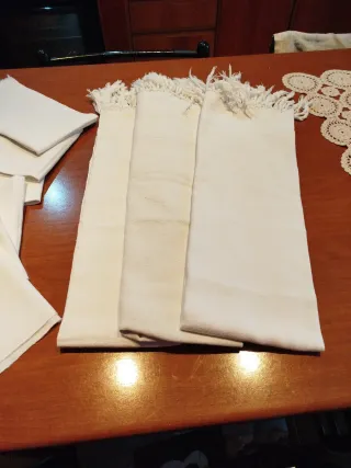 Teli di lino antichi, perfetti per dare un tocco di eleganza alla tua casa. - Finitura sfrangiata sui bordi. - Tessuto di alta qualità, sono 6 piccoli e 3 grandi con lettere ricamate