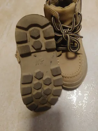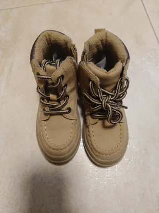 Stivaletti invernali per bambino, perfetti per le giornate fredde. - Materiale esterno in similpelle color cuoio. - Fodera interna calda e morbida. - Chiusura con lacci e zip laterale. - Suola in gomma antiscivolo.