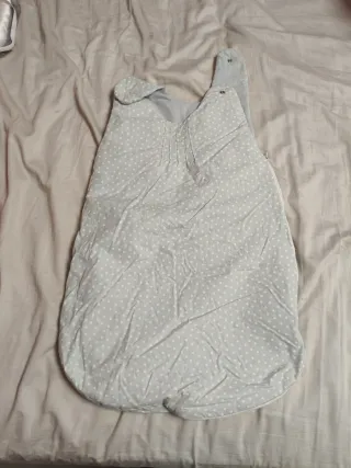 Morbido sacco nanna per i primi mesi del tuo bambino, con un simpatico motivo a pois. - Fantasia a pois bianchi su sfondo grigio. - Chiusura laterale con zip. - Spalline con bottoni a pressione.