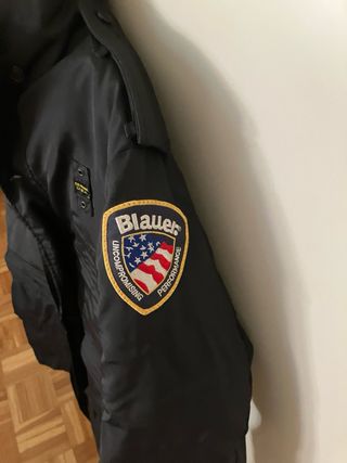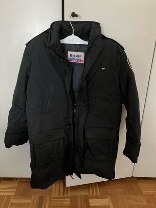 Parka modello Blauer di colore blu mis 12 anni. - Chiusura con zip e bottoni. - Tasche frontali con patta. - Collo alto con chiusura. - Dettagli con patch sulla manica.