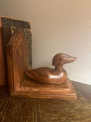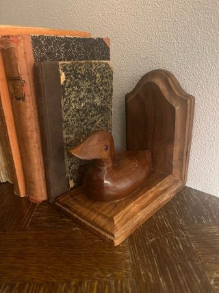 Elegante fermalibri in legno intagliato a forma di anatra, perfetto per aggiungere un tocco di stile alla tua casa