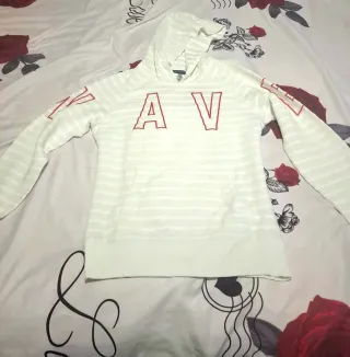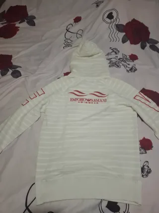 Felpa Emporio Armani originale a righe. - Colore bianco e rosso. - Logo sul petto.