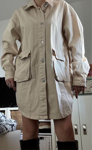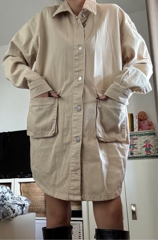 Camicia vestito modello over, perfetta per un look casual ma ricercato. - Design ampio e comodo. - Tasche frontali applicate. - Chiusura con bottoni. - Maniche lunghe con polsini.