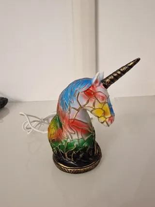 Lampada decorativa a forma di unicorno con un design in resina colorata. Ideale come decorazione e ottima soluzione anche come luce notturna. Cavo di alimentazione incluso.