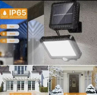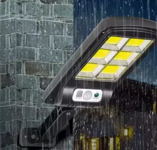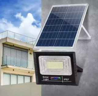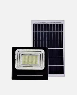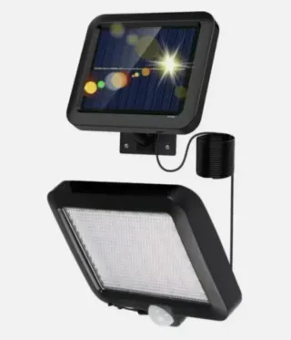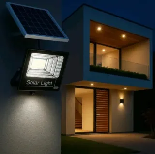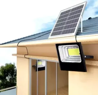 Potente faro solare da esterno con pannello dedicato. Ideale per illuminare giardini, cortili o aree esterne. - Potenza 200W. - Pannello solare incluso. - Funzione crepuscolare automatica.