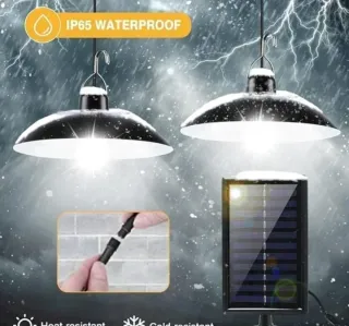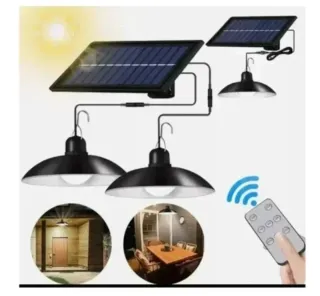 Lampada da esterno alimentata a energia solare, ideale per illuminare portici, verande o aree esterne. - Pannello solare incluso. - Design moderno e funzionale. - Telecomando per il controllo.