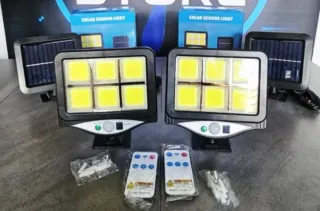 Set di faretti esterni alimentati a energia solare, dotati di sensore di movimento. Ideali per illuminare giardini, vialetti o cortili. - Design moderno e funzionale. - Facili da installare. - Controllo tramite telecomando incluso.