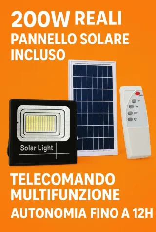 Faro Solare LED 200W con Pannello e Telecomando