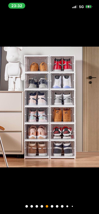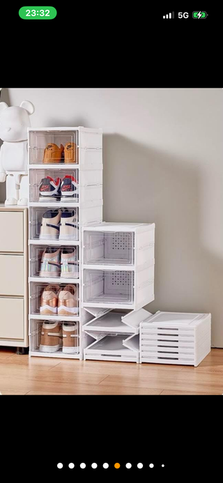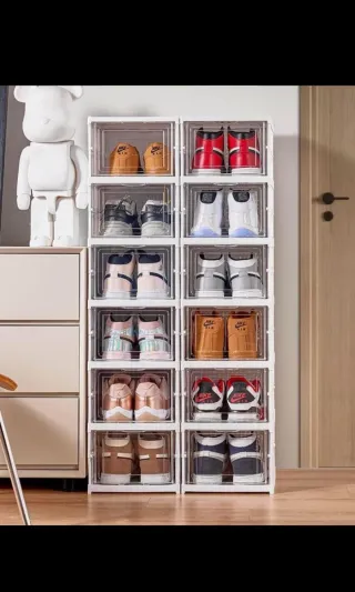 Pratica scarpiera pieghevole per organizzare le tue scarpe. Facile da montare e smontare. - Struttura robusta in plastica. - Design trasparente per vedere il contenuto. - Colore bianco per un look pulito.