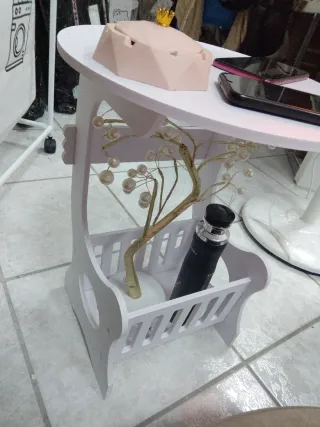 Elegante tavolino in stile shabby chic, perfetto per aggiungere un tocco di classe a qualsiasi ambiente. Le sue dimensioni lo rendono pratico e versatile. - Diametro piano: 36 cm - Altezza: 47 cm - Larghezza base: 24 cm - Design con vano porta riviste