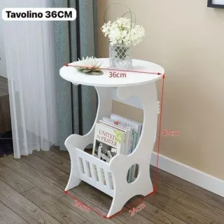 Pratico tavolino bianco, perfetto per ottimizzare lo spazio in casa. Ideale come comodino o porta riviste. - Diametro piano: 36cm - Altezza: 47cm - Larghezza base: 24cm