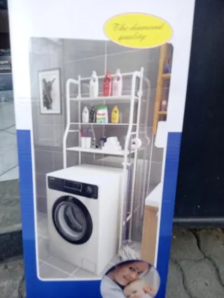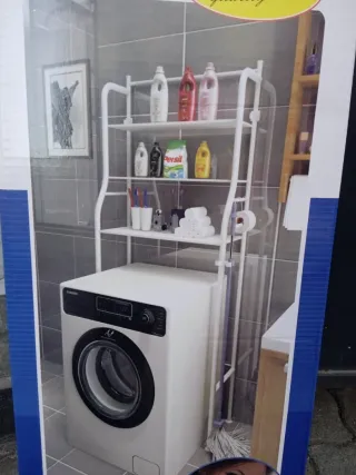 Pratico scaffale organizer da posizionare sopra la lavatrice, ideale per ottimizzare lo spazio in bagno o lavanderia. Le mensole offrono spazio per riporre detersivi, asciugamani e altri accessori. - Struttura robusta in metallo. - Mensole in plastica resistente.
