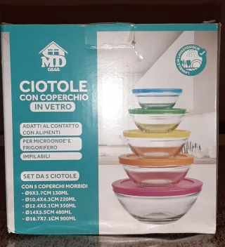 Set 5 Ciotole Vetro MD Casa Coperchi Morbidi