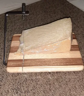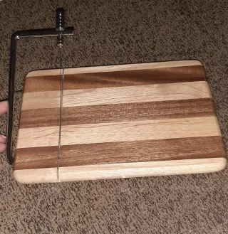 Tagliere in legno con lama per tagliare formaggi morbidi nuovo ancora nella sua confezione comprese 3 lame di ricambio - Struttura in legno a listelli. - Filo metallico per il taglio.