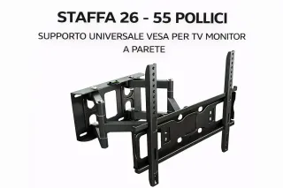 Supporto universale VESA per TV e monitor da 26 a 55 pollici, da installare a parete. - Design robusto e funzionale. - Ideale per ottimizzare lo spazio. - Finitura nera.
