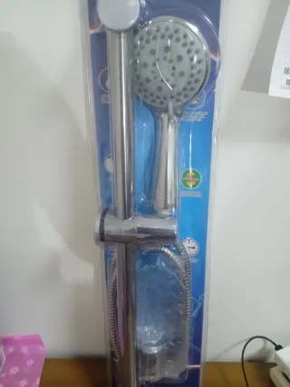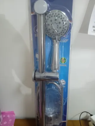 Set completo per la doccia, include asta, soffione e flessibile. - Finitura in metallo lucido. - Asta regolabile in altezza. - Soffione con diversi getti d'acqua.