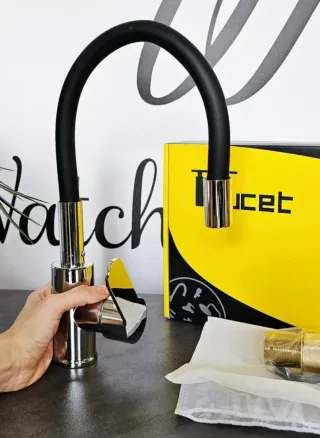 Elegante rubinetto per cucina con un design moderno e finiture di alta qualità. Ideale per dare un tocco di stile al tuo ambiente. - Finitura lucida in metallo. - Maniglia ergonomica in plastica.