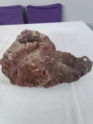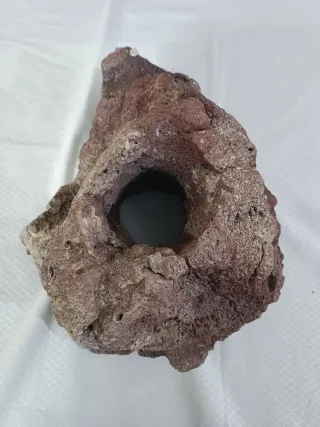 Roccia vulcanica di colore rosso, ideale per acquari. La sua texture porosa e forma irregolare la rendono unica. Ha forma di vulcano, necessita di una spazzolatura per eliminare vecchi resti di muschio e piante. Misure: 40x30x20 cm. Peso: 6.3 kg. Colore: Rosso. Materiale: Roccia vulcanica.