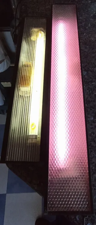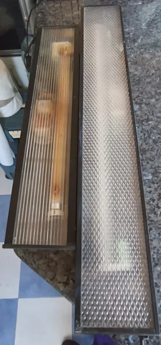 - Si vendono due lampade rettangolari con cornice nera e griglia protettiva, con motivo a rombi. - Cavo di alimentazione con interruttore. - Adatto per acquari, vasche per pesci, terrari, stagni, tartarughiere, piante naturali, ecc... - La piccola è di luce bianca, 57 cm di larghezza: 10€. - La grande è di luce blu, 77 cm di larghezza: 20€. - Se si prendono entrambe si ottiene un prezzo più economico: 25€.