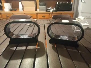 Due eleganti acquari con design moderno. 5 euro l'unità. Struttura principale in colore nero. Design ovale con dettagli trasparenti.