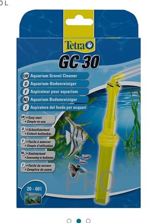 Pulitore per fondali di acquari Tetra GC 30, con tubo flessibile, valvola di avviamento rapido e griglia di protezione per i pesci, aspiratore di fango con design a tubo aspirante, per acquari da 20 a 60 L