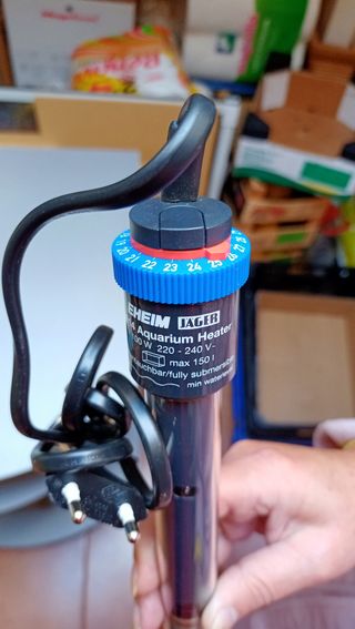 Riscaldatore Eheim, adatto per acquari fino a 150 litri. È immergibile. - Potenza: 100 W - Tensione: 220-240 V - Capacità massima: 150 l - Immersione totale o parziale Nuovo, l'ho tenuto come ricambio per l'acquario ma non è mai stato utilizzato. Misura 32 cm. Non spedisco. Zona Ferrolterra Tel. 659129449 Jose