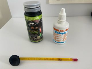 Termometro analogico da 15 cm per acquari con pesci e/o tartarughe, con ventosa per un fissaggio rapido e sicuro. In vendita prelibatezze a base di gamberetti con il 30% di gamberetti e il 15% di alghe e calcio insieme a un biberon di nutri stick per tartarughe. Includo una bottiglia di biocondizionatore d'acqua da 50 ml per terrari