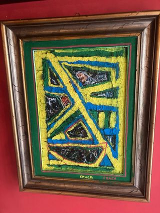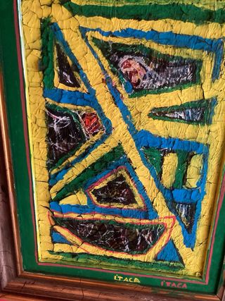 Quadro moderno con cornice, Itaca - Cornice color oro - Tela con texture materica e colori vivaci.