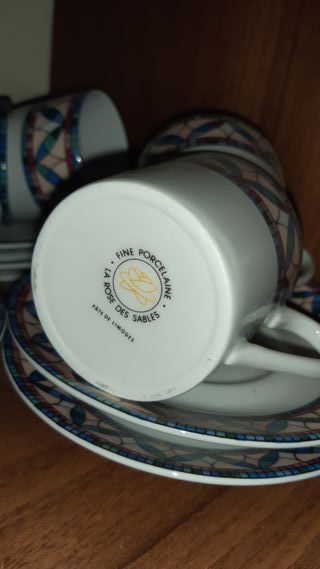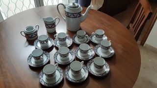 Elegante servizio da caffè vintage La Rose Des Sables, perfetto per aggiungere un tocco di classe alla tua tavola. - Set composto da caffettiera, zuccheriera e lattiera. - Include 11 tazzine con piattini. - Design con decorazioni geometriche e floreali.