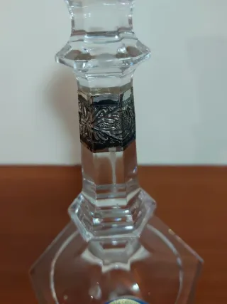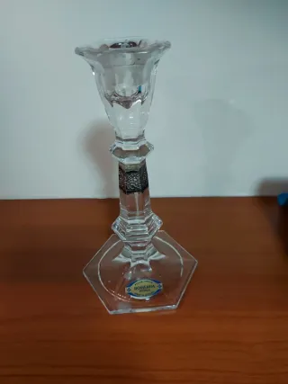 Elegante portacandele in cristallo di Bohemia con decorazioni in argento 925. Un pezzo raffinato per la tua casa. - Design classico e intramontabile. - Base esagonale stabile. - Dettagli decorativi sul fusto.