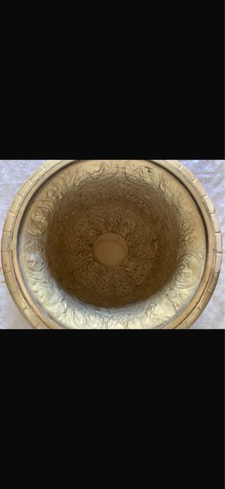 Elegante set composto da un vaso e un piatto, realizzato in metallo con finiture dorate e argentate. - Vaso finemente decorato. - Piatto ornamentale con dettagli. - Design classico e raffinato.