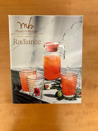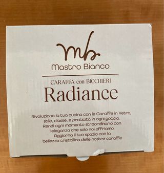 Set completo Mastro Bianco linea Radiance, ideale per acqua, succhi e bevande fredde. Composizione del set: 1 caraffa in vetro con tappo 6 bicchieri in vetro coordinati Il set è completo. Nelle foto sono mostrati solo alcuni bicchieri, ma tutti e 6 sono presenti. Prodotti in ottime condizioni, come visibile dalle foto. Scatola originale inclusa. #mastrobianco #caraffa #bicchieri #setcompleto #vetro #radiance #tavola #cucina #bevande #acqua #design #arredocasa #casadolce