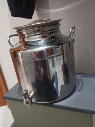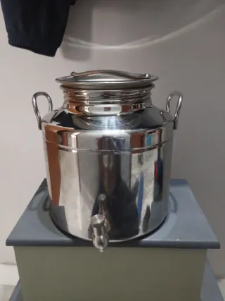 Contenitore in metallo con rubinetto, ideale per conservare olio. Capacità 5 litri - Manici laterali per un facile trasporto. - Coperchio superiore con chiusura ermetica.