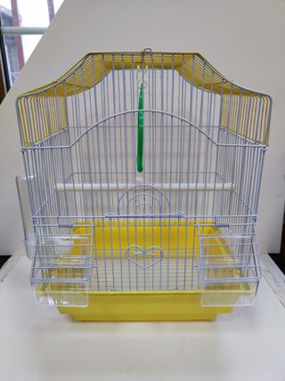 Gabbia per uccelli di colore giallo e bianco, con accessori inclusi. (Disponibile anche rossa, blu o verde, come da foto). - Posatoio bianco - Mangiatoie trasparenti - Bevitore trasparente - Altalena verde - Misure: Altezza 38 - Larghezza 27 cm - Profondità 20 cm