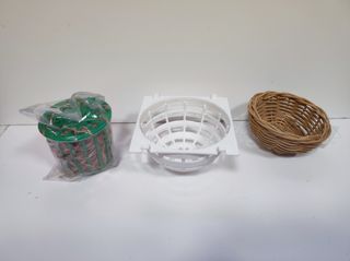 Set composto da: - Nido in plastica da agganciare alla gabbia: 10 cm - Nido in vimini: 10 cm - Corda in juta per nidificazione - Un nido in vimini intrecciato. - Un nido in plastica bianca con griglia. - Un nido in plastica verde con materiale fibroso all'interno, confezionato.