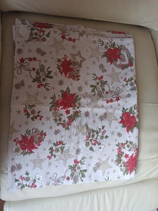 Tovaglia natalizia in cotone e in buone condizioni anche se usata. Misura: 135x220