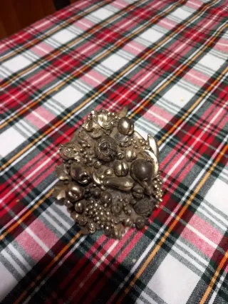 Cornucopia decorativa a forma di cesto di frutta. - Realizzata in metallo. - Finitura argento.