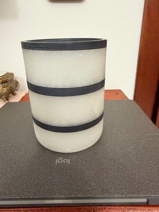 Elegante vaso decorativo con un design moderno. Diametro 10 cm Altezza 13 cm - Materiale pietra - Colori bianco e nero