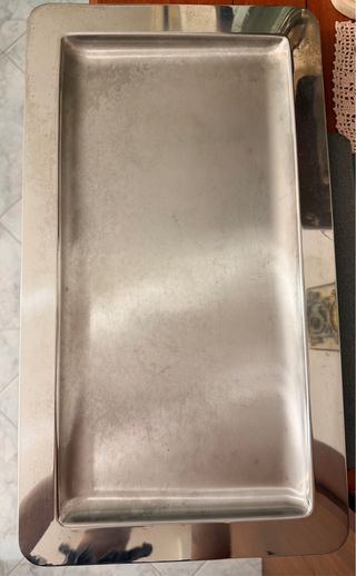 Elegante vassoio rettangolare, perfetto per servire. Misure 45x25x3 cm - Realizzato in acciaio resistente. - Design moderno e funzionale.