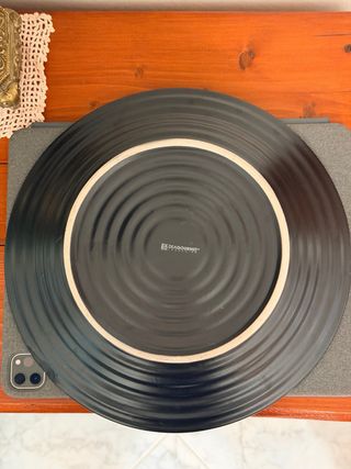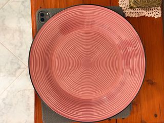 Elegante piatto Deagourmet, perfetto per servire le tue portate. - diametro 28 cm - Design a spirale. - Colore rosa vivace. - Bordo nero a contrasto.
