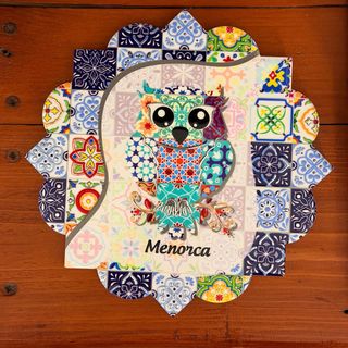 Bellissimo sottopentola decorato con un gufo colorato e piastrelle in stile Maiolica. Perfetto per aggiungere un tocco di colore alla tua cucina o come idea regalo. - Diametro 18 cm - Design unico con gufo. - Motivi floreali e geometrici. - Bordo decorato.