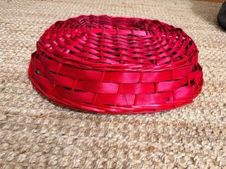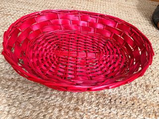 Elegante cesto ovale, perfetto per contenere oggetti o come elemento decorativo. - misure 52x43x10 cm - Realizzato in vimini intrecciato. - Colore rosso vivace.