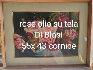 Bellissimo dipinto ad olio raffigurante un mazzo di rose. L'opera è firmata dall'artista Di Blasi. - Tecnica: Olio su tela. - Soggetto: Mazzo di rose. - Firma: Presente sul retro del telaio dell'artista Di Blasi. Cm 53x42