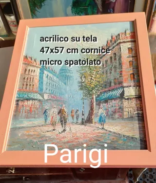 Bellissimo dipinto a microspatolato raffigurante una scena parigina. - Tecnica: acrilico su tela. - Dimensioni: 47x57 cm. - Cornice inclusa.