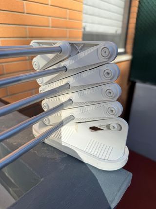 Stendibiancheria da esterno di colore bianco, ideale per stendere i panni all'aria aperta. Lunghezza 160cm. - Struttura in plastica bianca. - Barre in metallo argentato.
