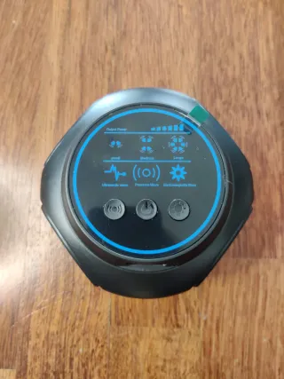 Dispositivo elettronico per il benessere personale. - Potenza di uscita regolabile su tre livelli: piccolo, medio, grande. - Modalità di funzionamento: ultrasuoni, onda di pressione, onda elettromagnetica. - Tre pulsanti di controllo per la selezione delle funzioni.