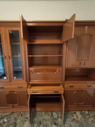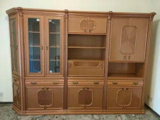 Vendo splendida parete attrezzata esternamente in legno massello. Come si può notare é in buone condizioni e sempre trattata con cura. Mobile di grande fascino, non paragonabile ai prodotti moderni industriali. Trasporto a carico dell’acquirente.