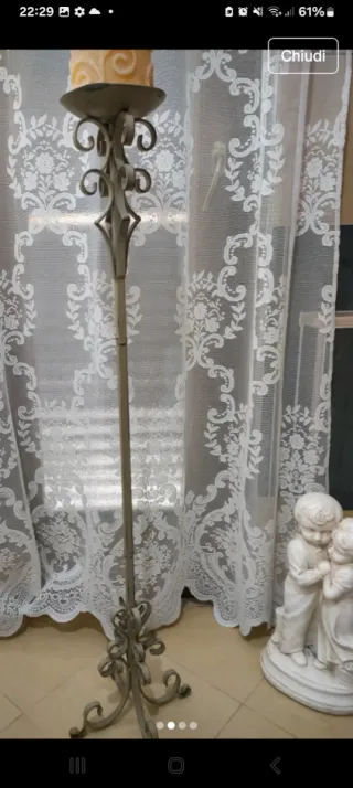 Elegante portacandele alto, perfetto per aggiungere un tocco di stile alla tua casa. - Design in ferro battuto - Colore beige( fango) e grigio neutro facilmente potreste cambiare colore.