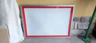Lavagna da parete per appunti da scrivere su superficie in plastica (un po' rovinata da aloni dovuti all'usura). La fodera in cartone presenta anch'essa segni di usura (come da foto) La lavagna può essere usata anche come cornice per inserire un'immagine o una fotografia.
